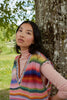Vesturin er bundin aftur og fram og síðani seymaður saman.
